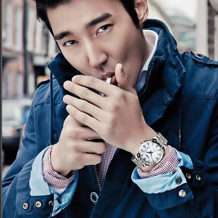 Stainless Steel Men Moonphase Quartz Watch with Strap - Black Blue