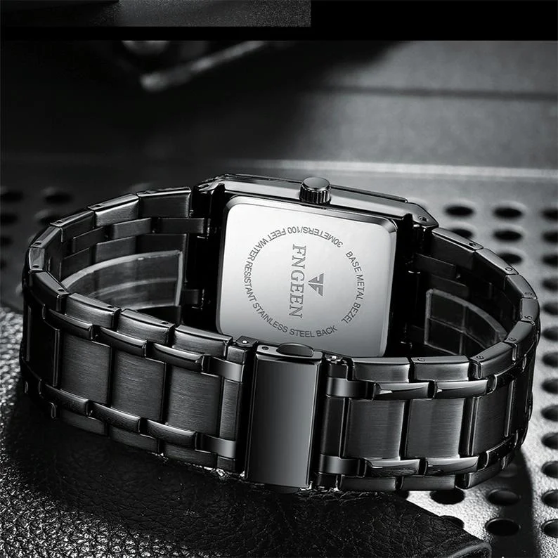 Waterproof Square Men Watch with Calendar - 50m - White Steel Black Surface