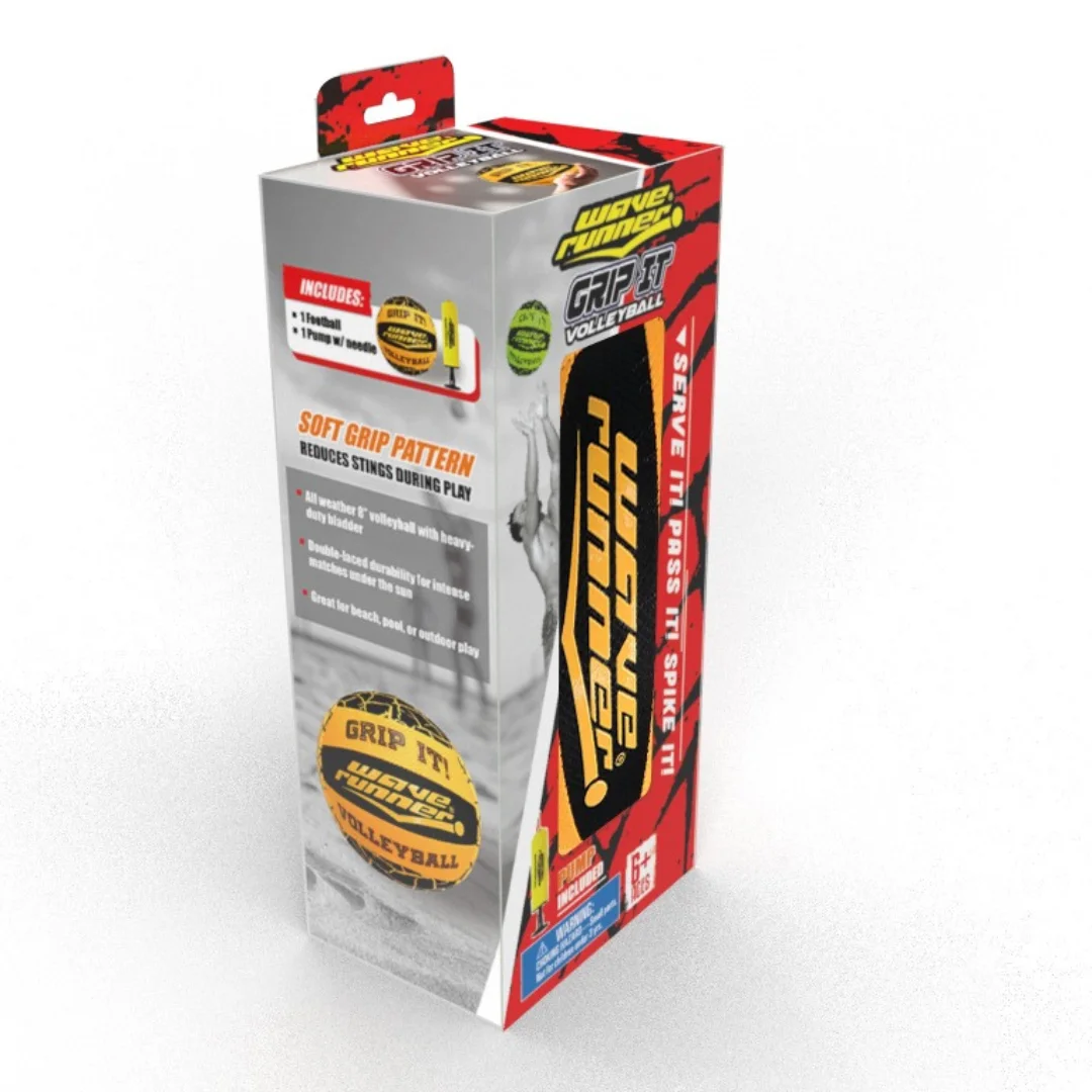 Wave Runner Grip It Volleyball 20cm with pump (deflated) Asst - WRV800-PUM The waterproof 20.3cm volleyball is perfect for playing in or out of the water.Strong grip material and soft texture provide great control when bumping or spiking the ball.Take it to the beach, pool, or park for endless hours of fun! Includes:1 x BallPlease note: This is an assorted item. Item will be selected at random