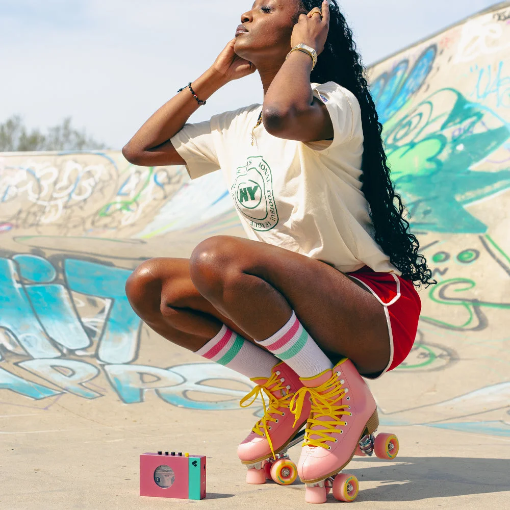 We Are Rewind Portable Cassette Player Recorder - Edith, Pink Green. We Are Rewind Portable Cassette Player Recorder – Bluetooth, Rechargeable, Aluminium Body. Rediscover analog audio with the We Are Rewind Cassette Player Recorder, a modern take on the classic portable Walkman-style player. Designed for tape lovers and retro enthusiasts, this premium unit blends vintage charm with essential modern upgrades.
