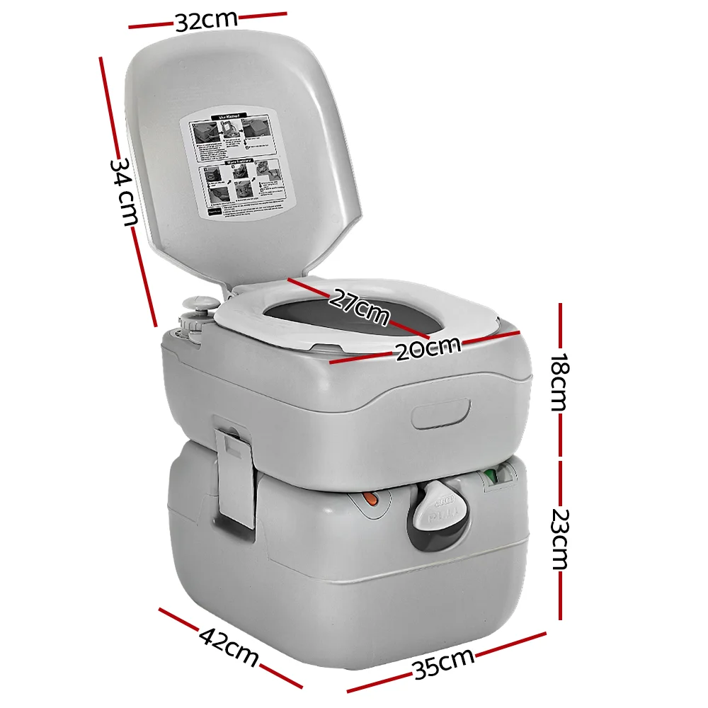 For instant relief while camping, nothing beats having this Weisshon 22L Portable Camping Toilet around. It features a high quality construction and generous water reserves. In fact, 14 litres of freshwater capacity that is good for up to 80 flushes. And unlike others, its two-way flush is ultra strong and ensures total and complete flushing for a thoroughly cleaned toilet. The double-sealed drain valve also protects against leakages and odours. The high-density construction makes it strong and durable while both the water and waste holding tanks are of one-piece construction with heavy-duty and corrosion resistant side latches locking the tanks together. The portable toilet has an attractive matte finish and is scratch-resistant. Not least, the 22-litre holding tank is detachable for easy disposal of contents and cleaning. With no power or water source required, our portable toilet is just perfect for your camping, picnic, marine or road trip.