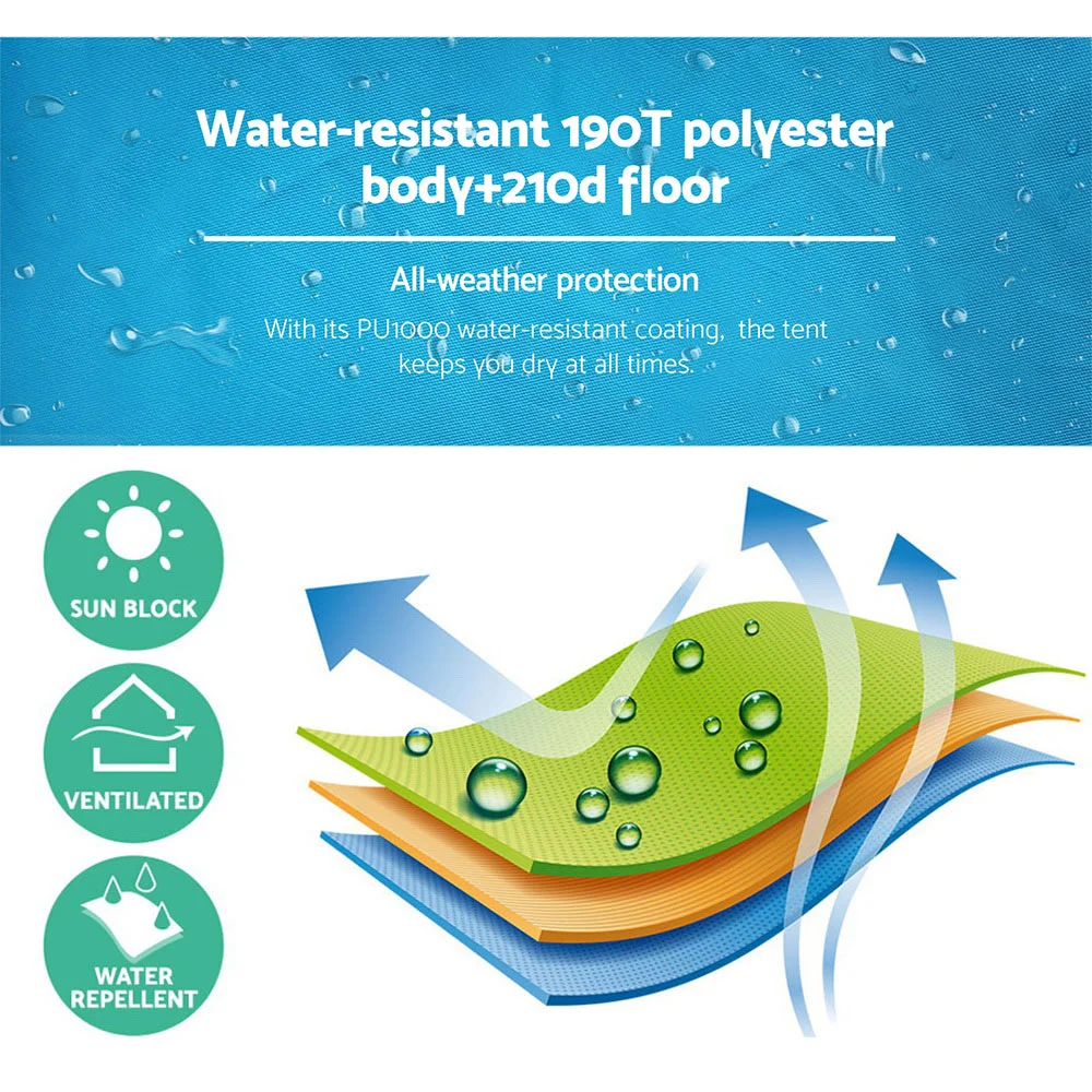 More importantly, this lightweight Tent comes with separate sections for showering and toilet use with proper drainage holes and adequate ventilation for comfort. Perfect for camping, road trips or even outdoor events like market days or sport meets, the Weisshorn Pop-u p Tent is a must to ensure a pleasant experience for everyone.