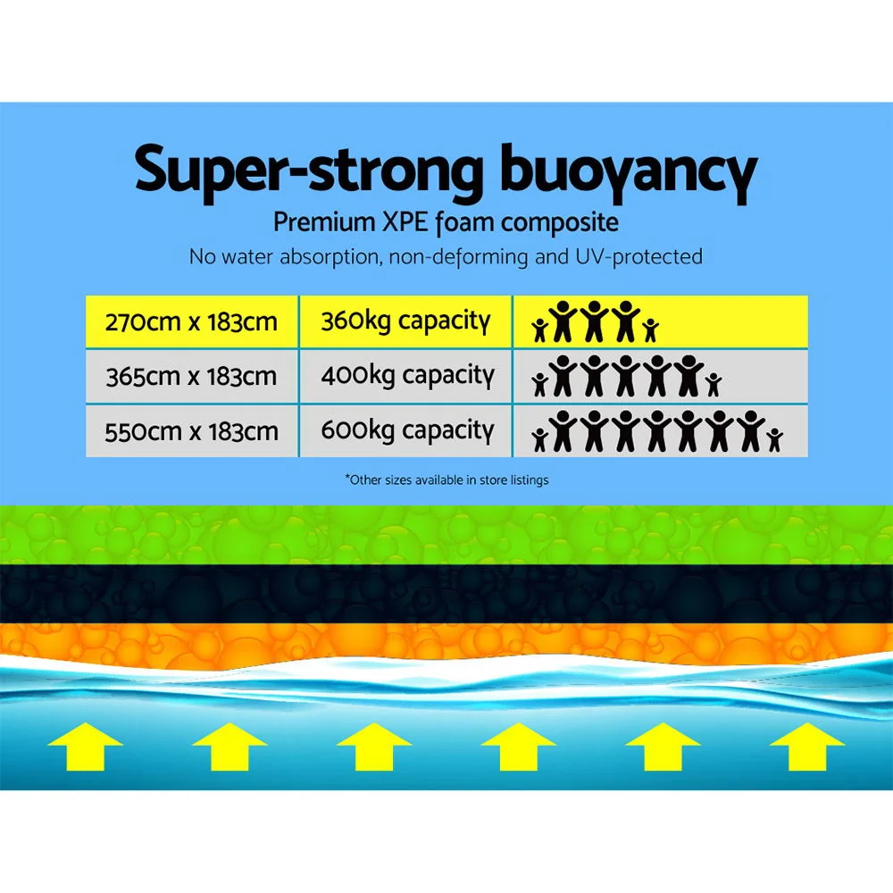 You do not have to perform miracles to walk on water, you just need our Weisshorn Floating Mat. The mat is made from 3.5cm thick three-layer XPE foam composite with super-strong buoyancy that keeps it stable and safe for you to perform various activities while floating on water. Anything is possible, from playing games and relaxing, to exercising or even fishing. And you can enjoy the waters with your family or friends, as the high weight capacity of 360kg means that up to 6 people can use the mat together. Made from environmentally friendly material that is also non-absorbent, not easily deformed, UV-resistant, fade-resistant and tear-resistant due to the mesh interlayer, you can be assured of aquatic fun with our mat for many years to come. The mat is also reversible, with bright colours on both sides so that you can change sides to suit your moods. Also included is a pre-installed bungee cord system to attach to hooks, docks, anchors or boats to prevent your mat from floating away. Best of all, it is lightweight and can easily be rolled up using the included straps. So store it in your car and take it with you wherever it is needed: to the beach, pool, water park or even the hot springs.