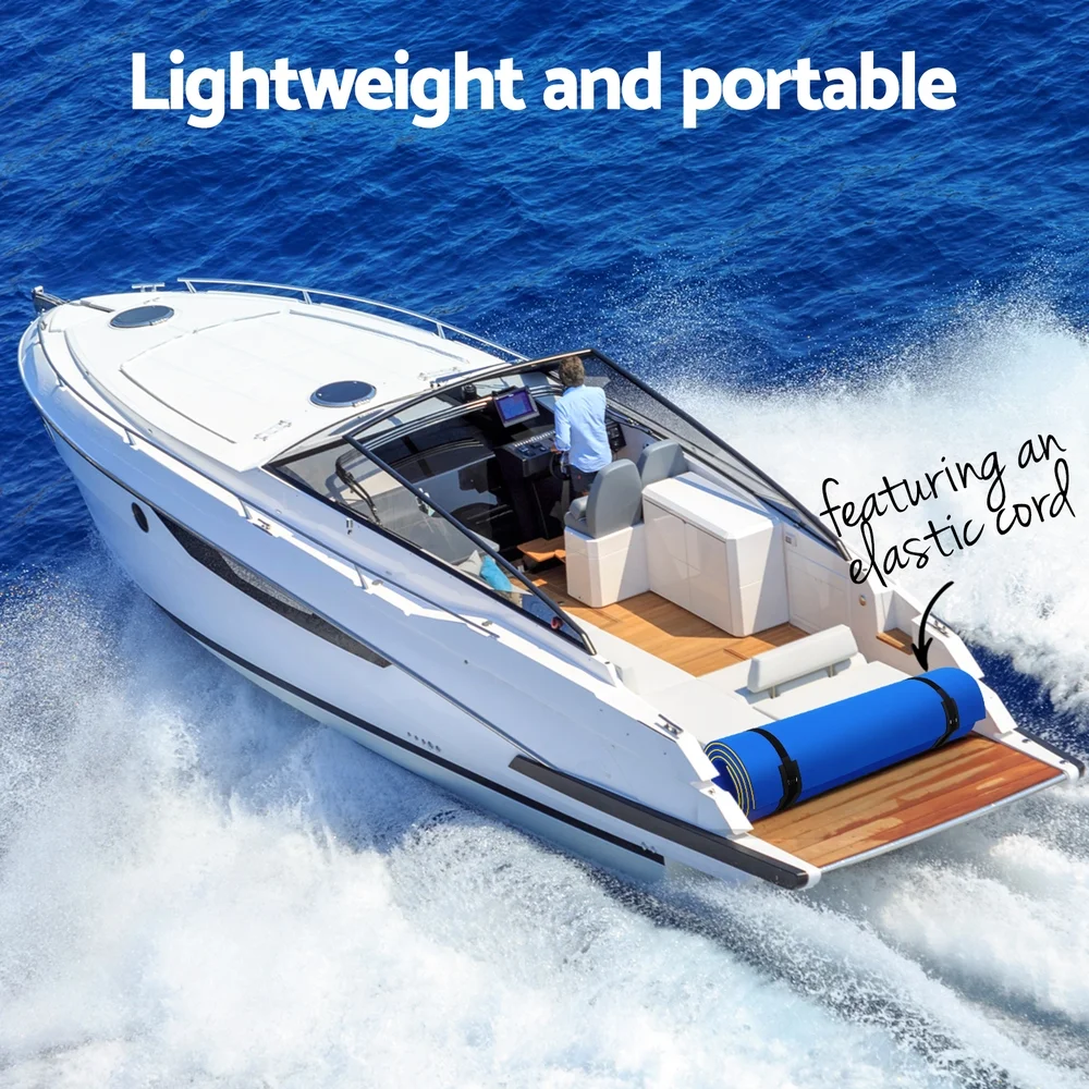 Made from durable material that is also non-absorbent, not easily deformed, UV-resistant, and tear-resistant due to the mesh interlayer, you can be assured of aquatic fun with our mat for many years to come. The mat is also reversible, with bright colours on both sides. Also included is a pre-installed bungee cord system to attach to hooks, docks, anchors or boats to prevent your mat from floating away. Best of all, it is lightweight and can easily be rolled up using the included straps. So store it in your car and take it with you wherever it is needed: to the beach, pool, water park or even the hot springs.