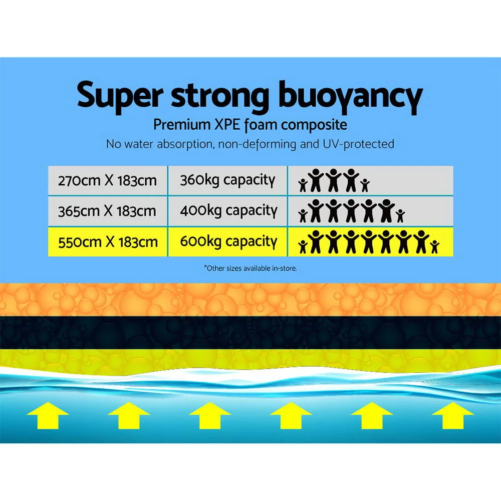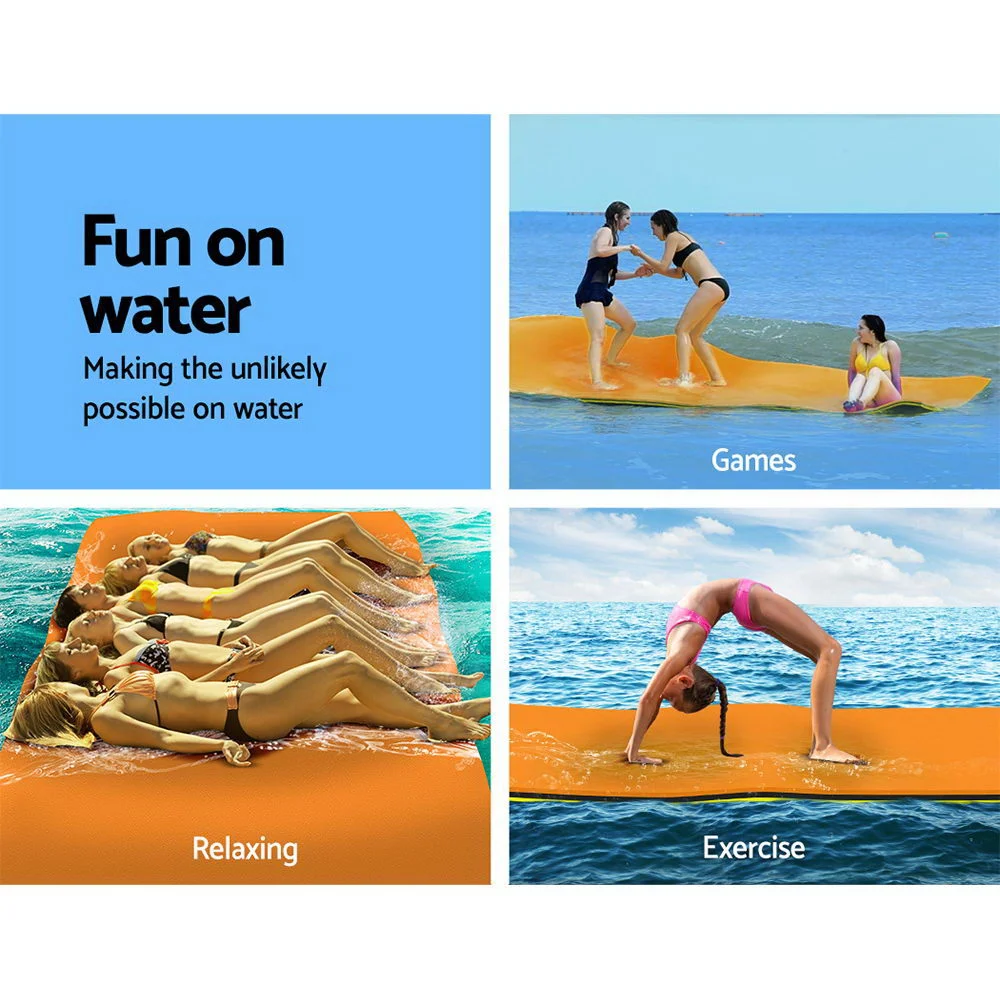 You do not have to perform miracles to walk on water, you just need our Floating Mat. The mat is made from 3.5cm thick three-layer XPE foam composite with super strong buoyancy that keeps it stable and safe for you to perform various activities while floating on water. Anything is possible, from playing games and relaxing, to exercising or even fishing. And you can enjoy the waters with your family or friends, as the high weight capacity of 600kg means that up to 10 people can use the mat together. Made from environmentally friendly material that is also non-absorbent, not easily deformed, UV-resistant, fade-resistant and tear-resistant due to the mesh interlayer, you can be assured of aquatic fun with our mat for many years to come. The mat is also reversible, with bright colours on both sides so that you can change sides to suit your moods. Also included is a pre-installed bungee cord system to attach to hooks, docks, anchors or boats to prevent your mat from floating away. Best of all, it is lightweight and can easily be rolled up using the included straps. So store it in your car and bring it with you wherever it is needed: to the beach, pool, water park or even the hot springs.