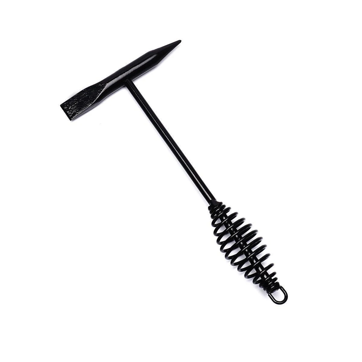 The hammer features a durable spring handle that provides a cushioned grip, absorbing impact and reducing hand fatigue.