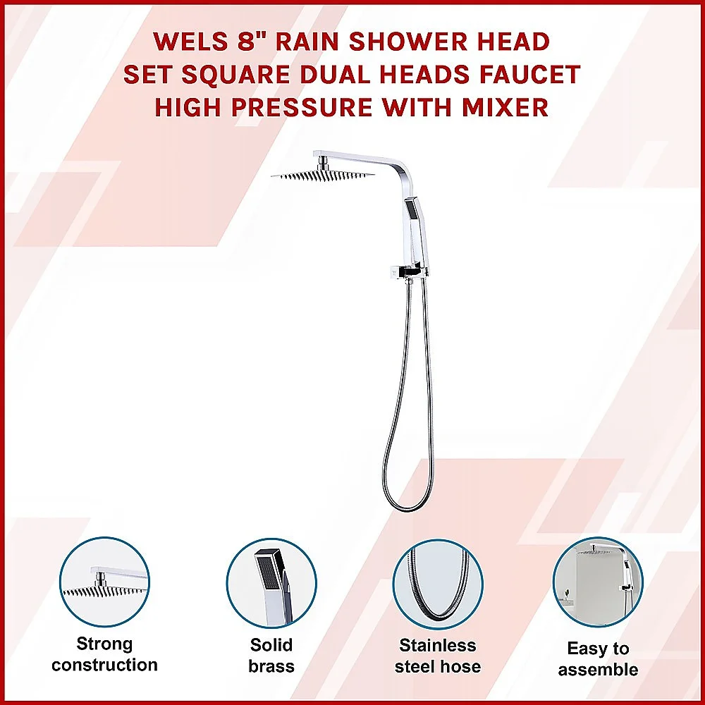 WELS Matt Black 12" Large Round Rain Shower Head & Gooseneck Swivel Wall Arm Set