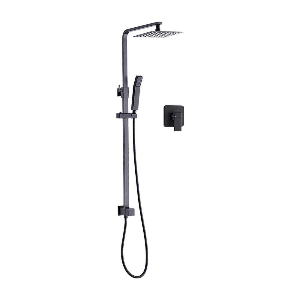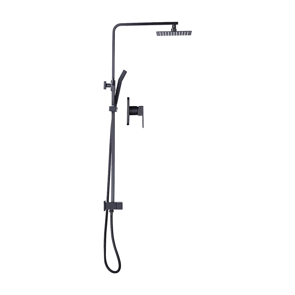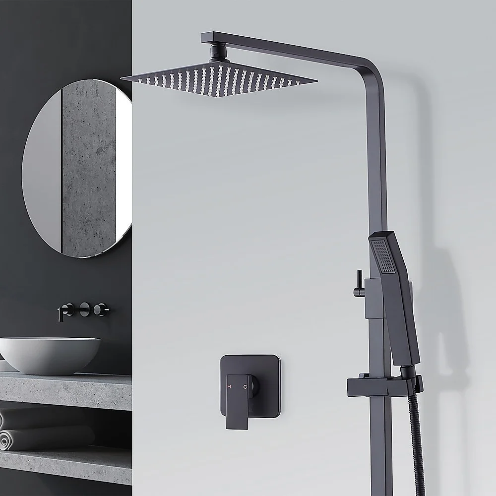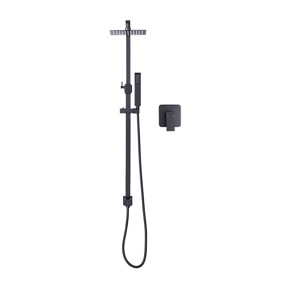 Matt Black 2in1 Set Square 10" Shower Rain Head Handheld Adjustable Silding Rail + Twin Taps