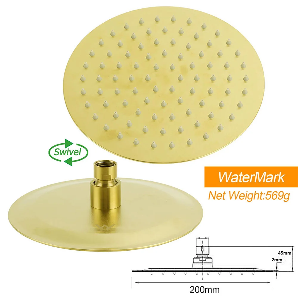 WELS Brushed Gold Round 2in1 Shower Head Set Ergonomic Handheld Gooseneck Arm Twin Taps