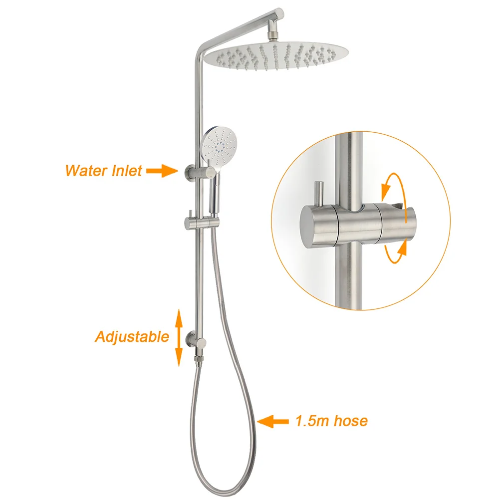 WELS Brushed Nickel Dual Shower Set Sliding Rail Arm 12" Round Head Handheld Wall Mixer
