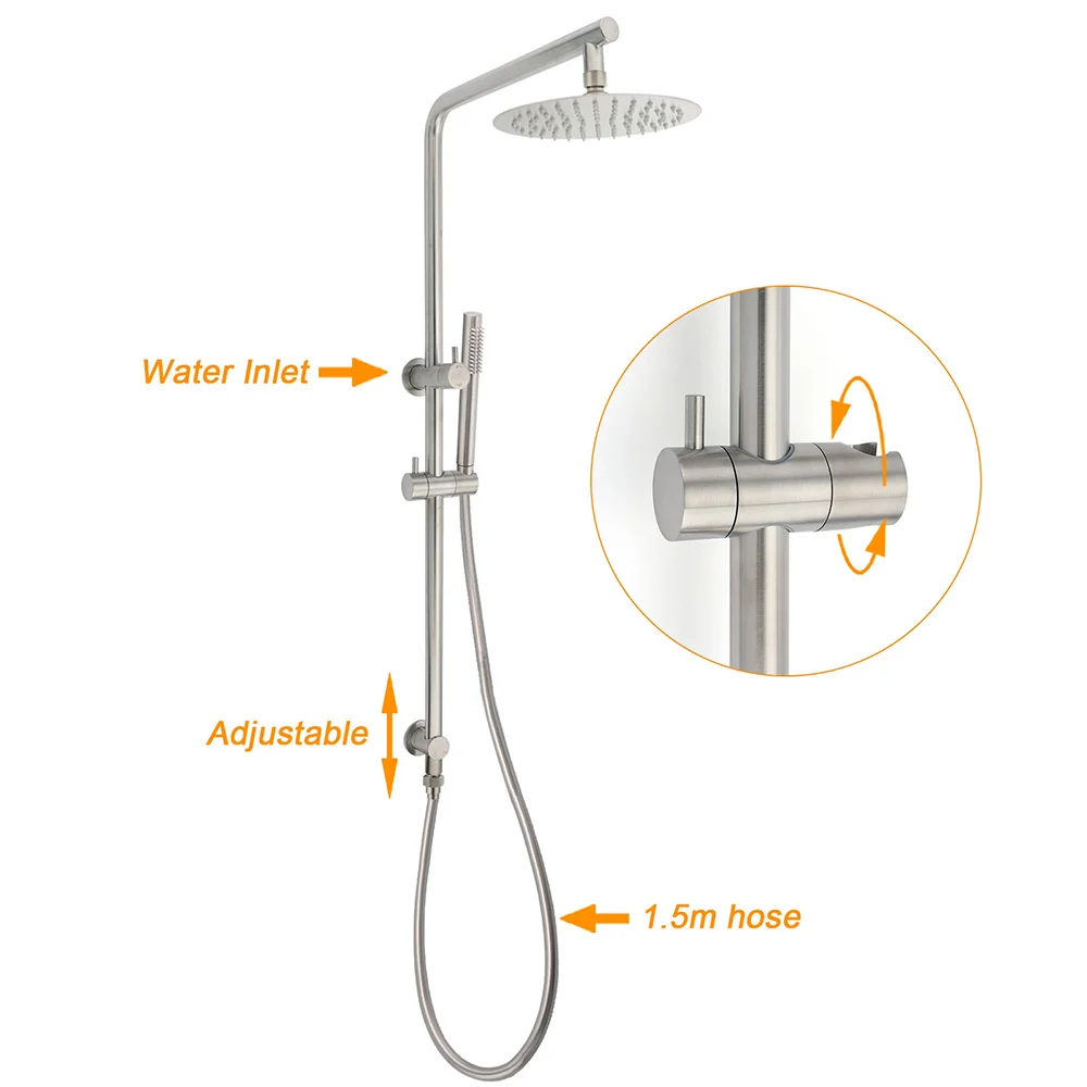 WELS Brushed Nickel Dual Shower Set Sliding Rail Arm 8" Round Head Metal Handheld Wall Mixer