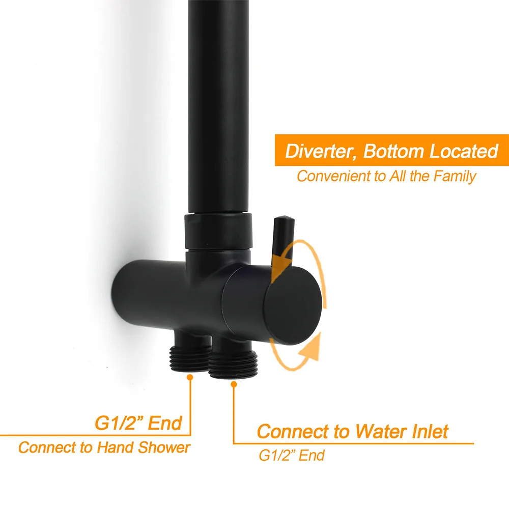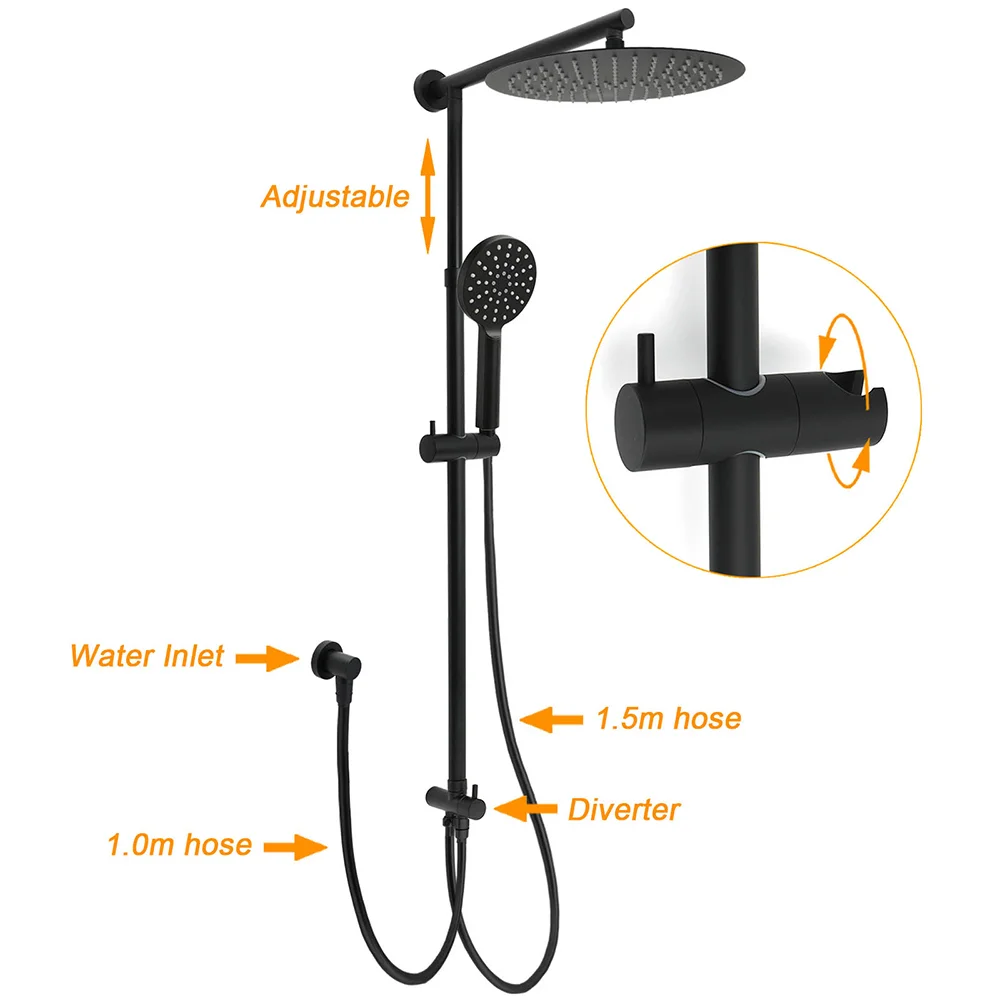 - Materials: Stainless steel in rail, plastic in shower holder, brass in diverter