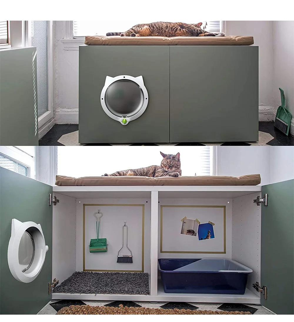 - Universal Installation: Ideal for a variety of applications. Install it in interior doors, walls, or even cabinets to create a discreet passage to a litter box or feeding station. Fits standard doors and panels up to 5cm (approx. 2 inches) thick.