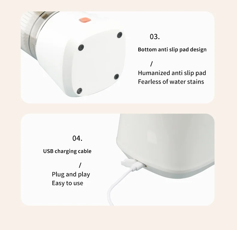 - Wireless & Portable Convenience: Featuring USB charging, this juicer is completely cordless, allowing you to make fresh juice at home, in the office, outdoors, or while travelling.