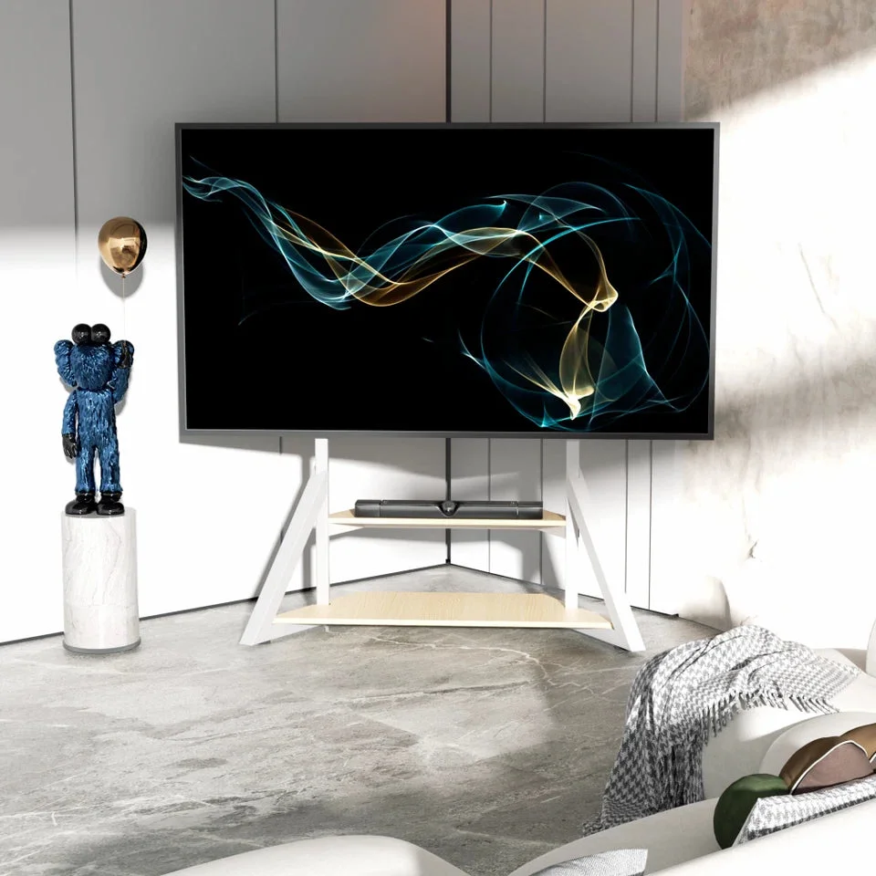 The stand features adjustable height settings (138168 cm) to help you achieve the perfect viewing angle. Two solid MDF shelves provide generous storage for AV equipment, gaming consoles, or media devices. A trapezoidal base design and adjustable feet pads ensure excellent balance, even on uneven floors. Ideal for living rooms, offices, schools, conference rooms, and exhibition halls.