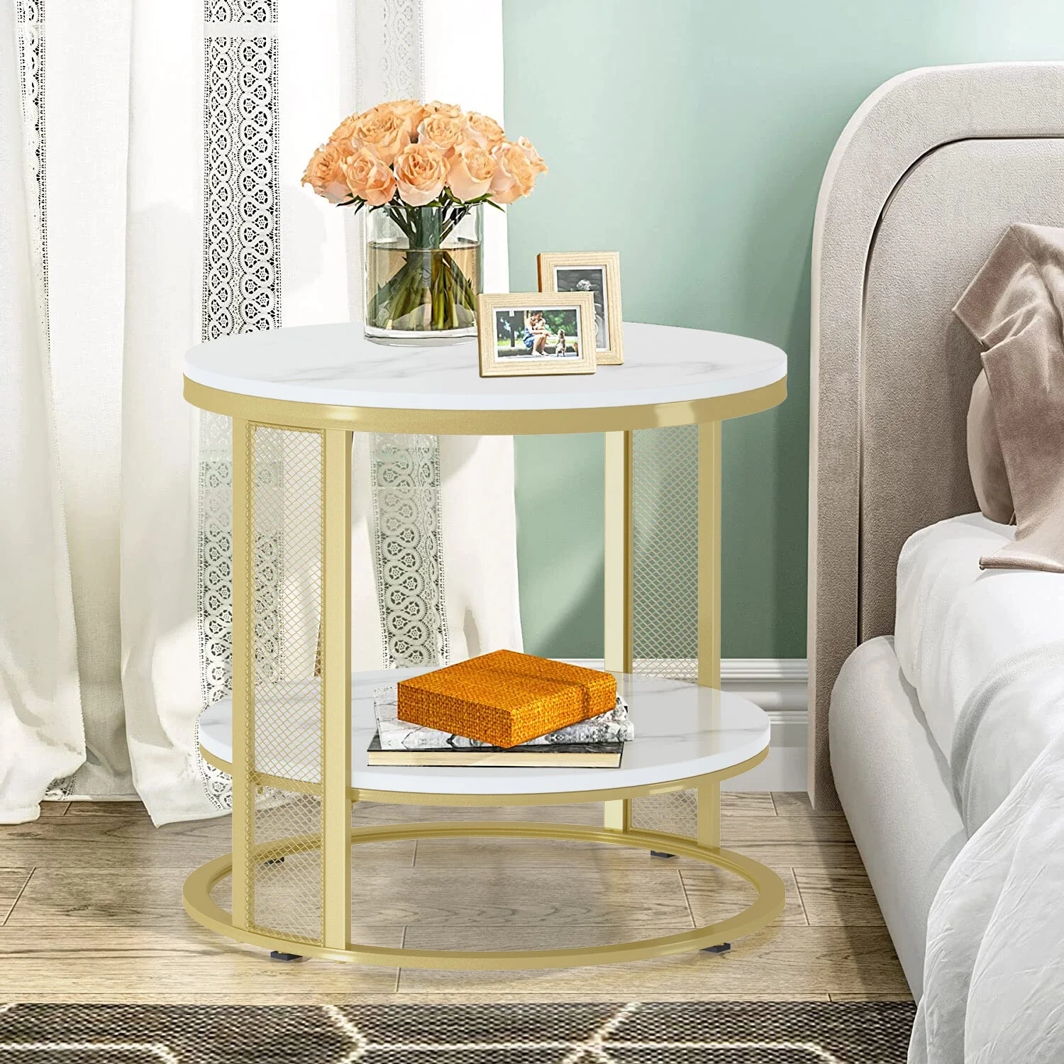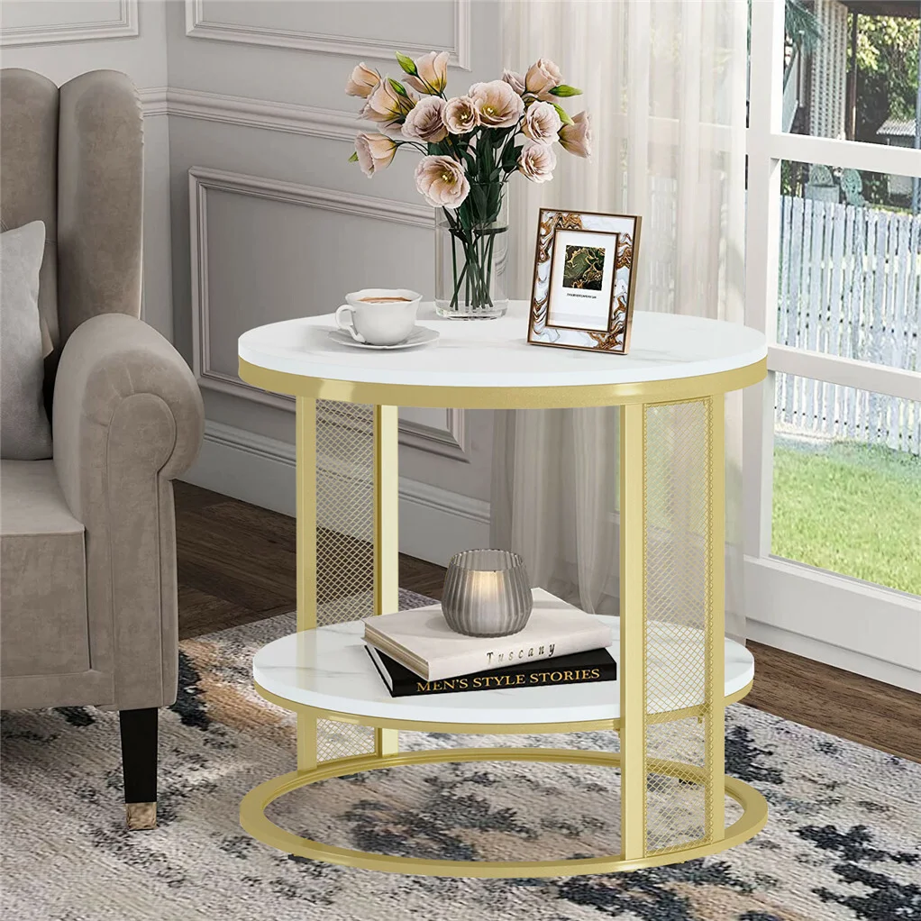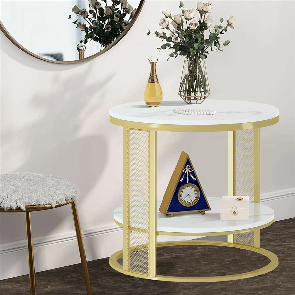 2 Tier Gold Side Table From holding decorations during the holiday season to drinks during cocktail hour, this dual-layer accent table provides more storage space. Put an accent lamp and photo frame on top, a rustic vase or magazines at the bottom, it must be a beautiful landscape.