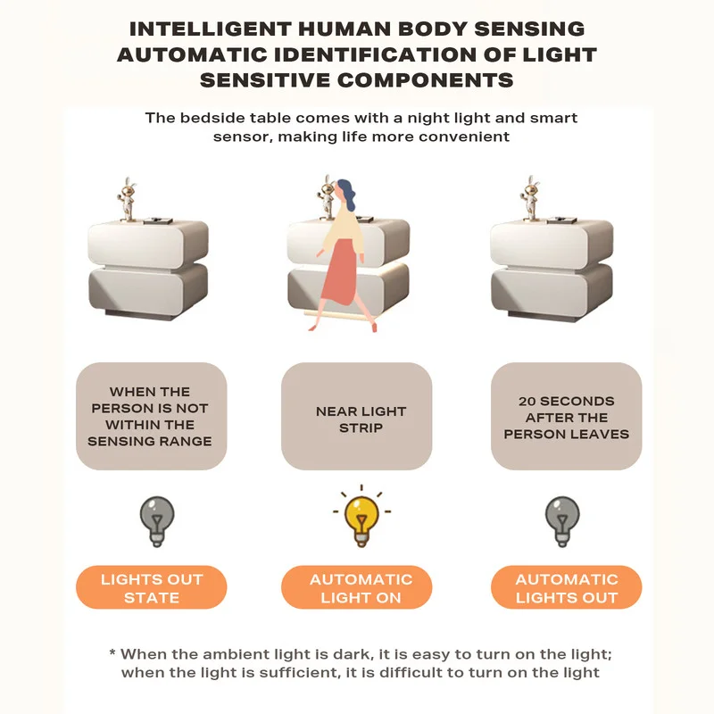 Intelligent induction atmosphere light, automatically turns on the light when sensing a person, and turns off the light 20 seconds after the person leaves. (When the environment is dark, it is easy to light up, but when there is sufficient light, it is not easy to light up)
