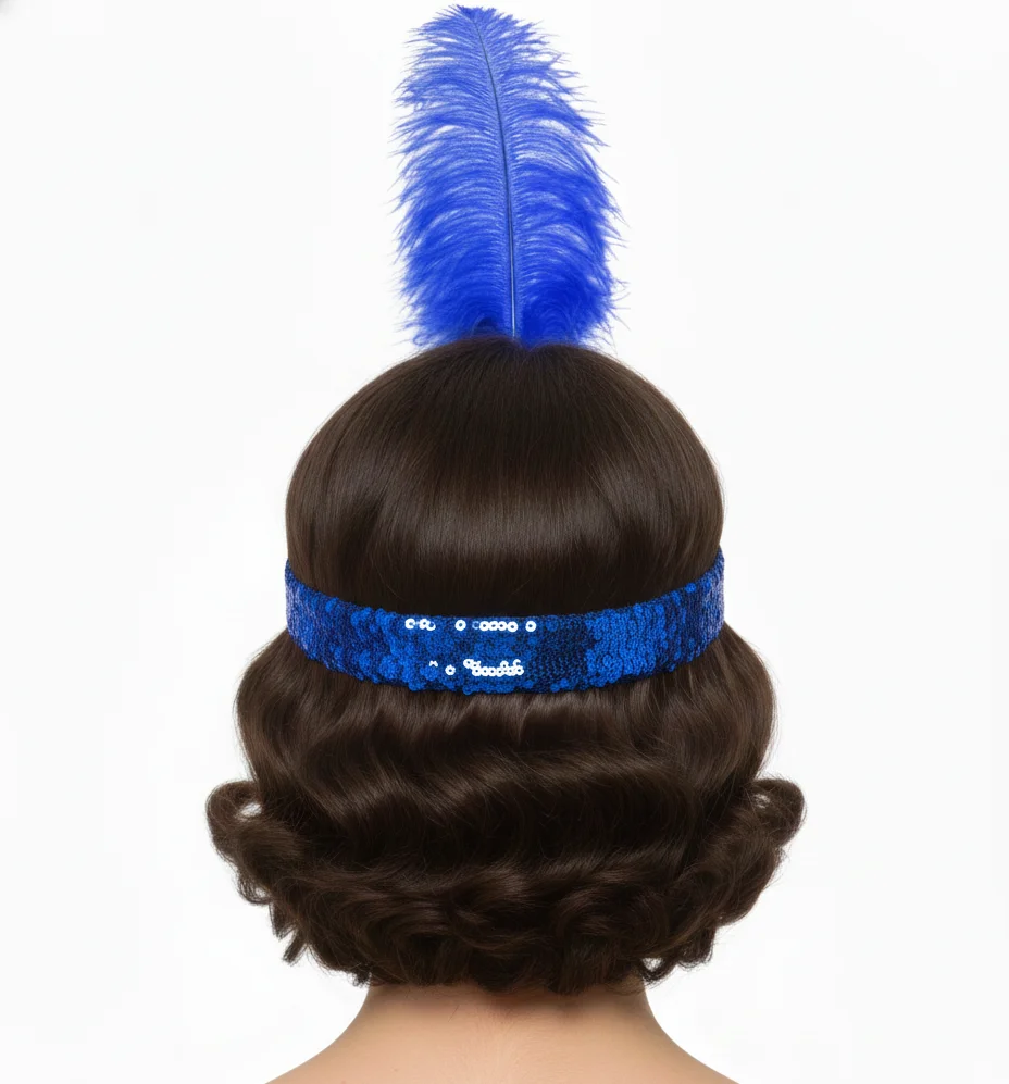 Great fun! Terrific flapper headpieces - featuring a stretch elastic sequin headband, jewel motif and an ostritch feather.