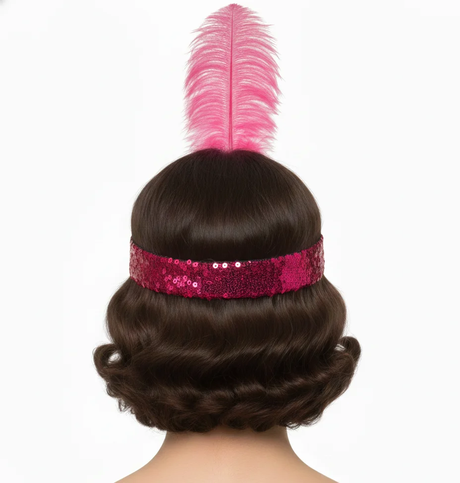 Great fun! Terrific flapper headpieces - featuring a stretch elastic sequin headband, jewel motif and an ostritch feather.
