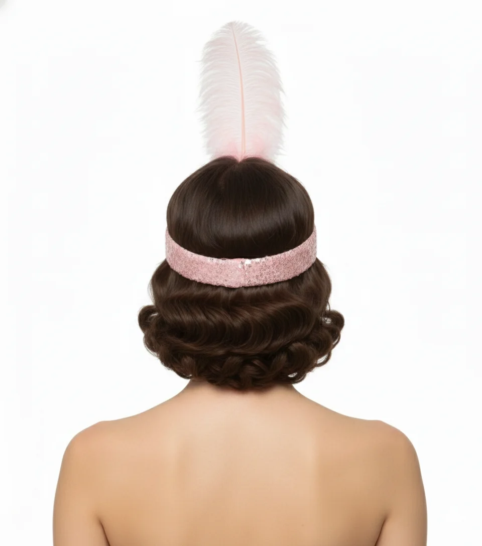 Great fun! Terrific flapper headpieces - featuring a stretch elastic sequin headband, jewel motif and an ostritch feather.