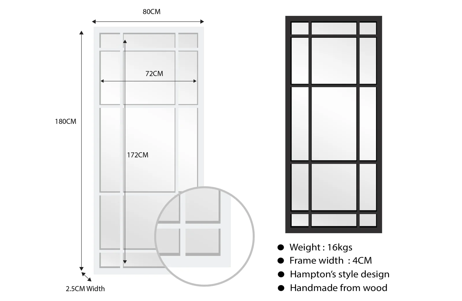 The Window Style Mirror Full Length - Black 80cm x 180cm is a beautiful and unique addition to any home decor. The mirror measures 80cm x 180cm and is made from high-quality materials, including wood and mirror.