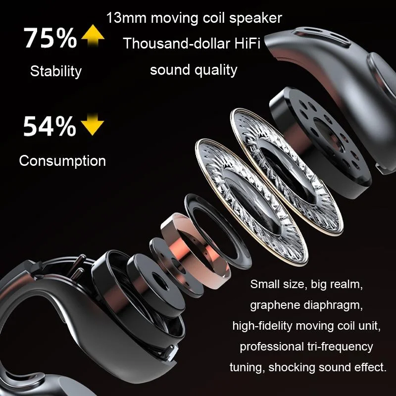 • 13mm moving-coil speakers for high-quality sound, graphene diaphragm, and professional tri-frequency tuning