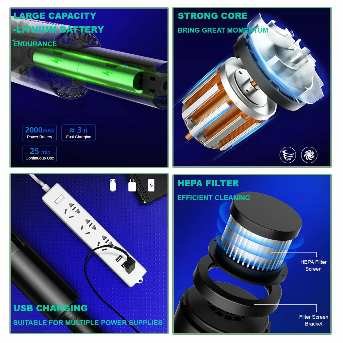 Durable Material: Made from high-quality ABS material, this vacuum cleaner is built to withstand daily use and ensure long-lasting performance.