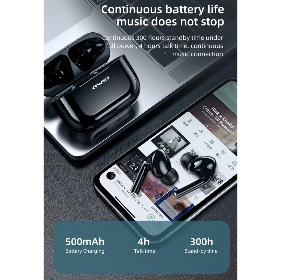 Waterproof Wireless Earbuds with Noise Cancelling and Charging Case - Black