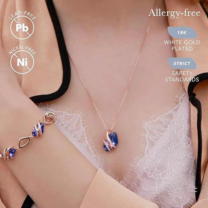 Wish Stone Pendant Necklace, Necklaces for Women with Birthstone Crystals, Allergy-Free Jewelry for Women with Gift Box, 18K Rose Gold Plated or Silver-tone Birthstone Necklace for Women-02-February Birthstone-Tanzanite Purple