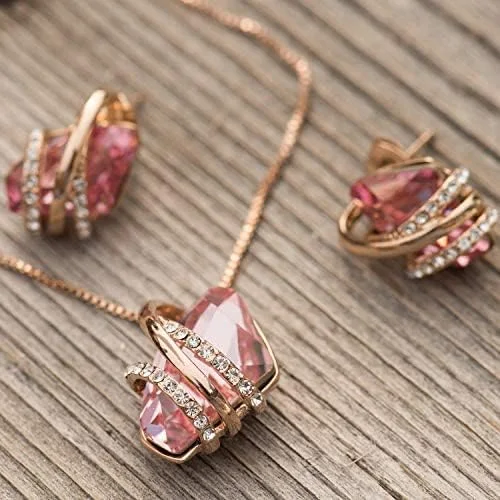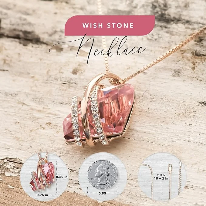 Wish Stone Pendant Necklace, Necklaces for Women with Birthstone Crystals, Allergy-Free Jewelry for Women with Gift Box, 25K Rose Gold Plated or Silver-tone Birthstone Necklace for Women-10-October Birthstone-Vintage Pink