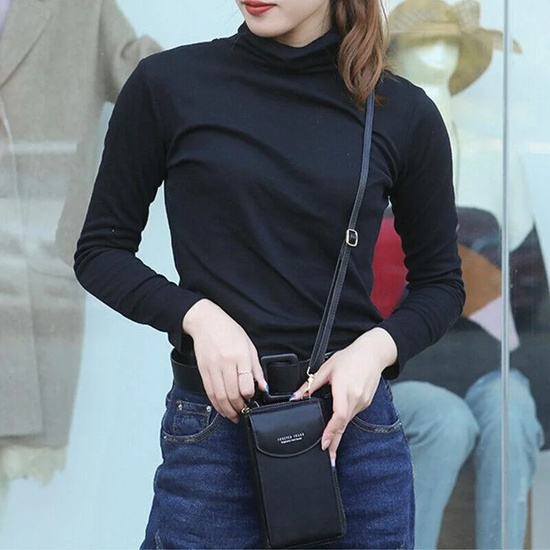 Touch Screen Crossbody Phone Bag with Clear Window PU Leather Wallet Purse - Black