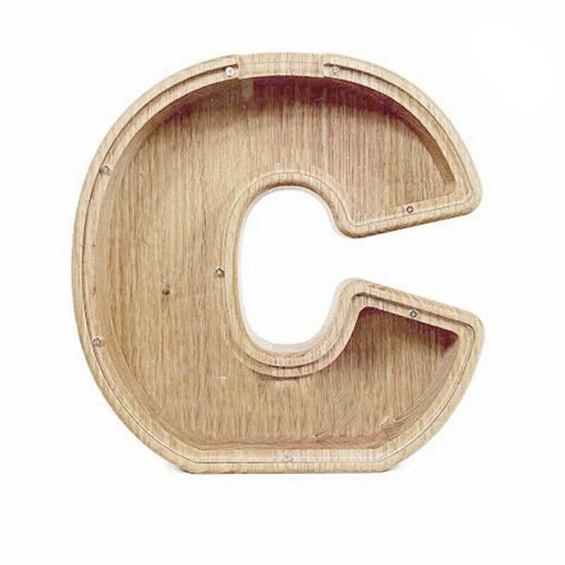 Unique Wooden Piggy Bank with an Alphabetical Theme