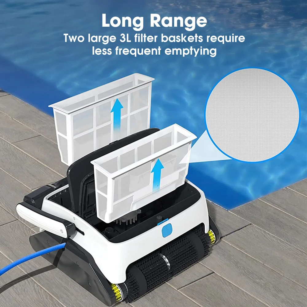 With a tangle-free 15 metre cable and dual upgraded larger filter volumes (3L each), the Grampus 800 can easily navigate your pool and collect all kinds of debris. The easy-to-remove and rinse filters ensure hassle-free maintenance.