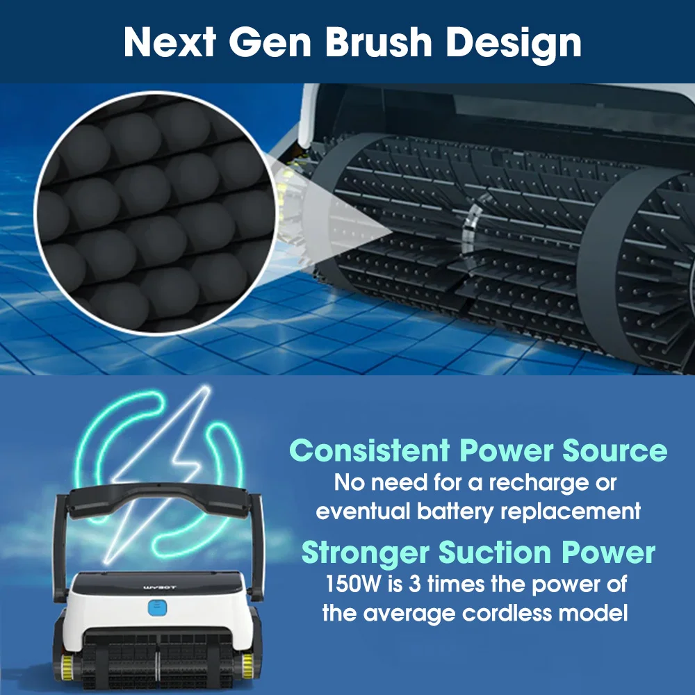 The enhanced roller offers strong adhesion, allowing it to adapt to your pool surface for optimal wall climbing. The Grampus cleans and scrubs all pool surfaces, including the waterline, with pinpoint accuracy. Say goodbye to manual cleaning and enjoy more free time.