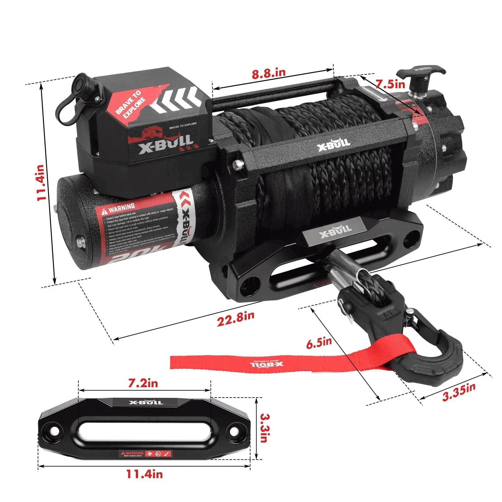 The X-BULL 20000lbs is one of our new X-BULL high-efficiency winches for all off-road and life-loving customers. This winch is equipped with an IP68 waterproof rating, capable of withstanding water, dust and dirt even in the most extreme off-road conditions. It is equipped with a 7.0hp/5.2kw pure copper motor, which can easily handle weights up to 20,000 pounds. The motor of the winch operates in series with a three-stage planetary gear system, providing an accurate transmission ratio of 354:1, specifically designed to handle demanding tasks. It offers both wired and wireless operation options, allowing for more flexible control of this winch. This winch fits a variety of off-road vehicles and offers an effective solution for diverse recovery situations.