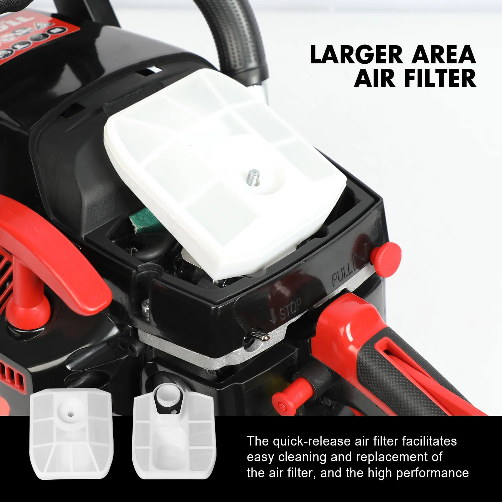 Easy service access to engine, filters and spark plug