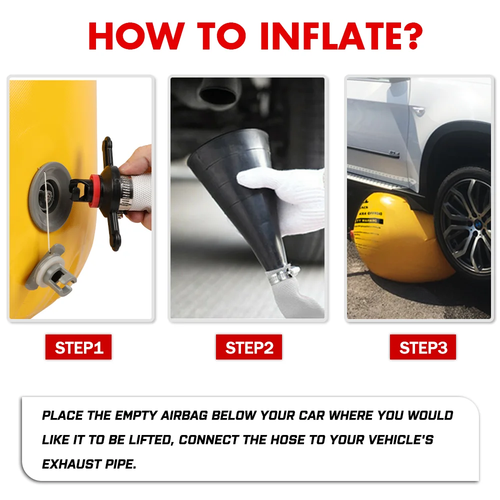 [Unique role]The exhaust jack can be used on hard ground and special terrain such as sand, mud and snow. Air jack can lift up to 5000kg of vehicles, which is equivalent to the weight of a truck. Therefore, the jacks can be applied to most car.