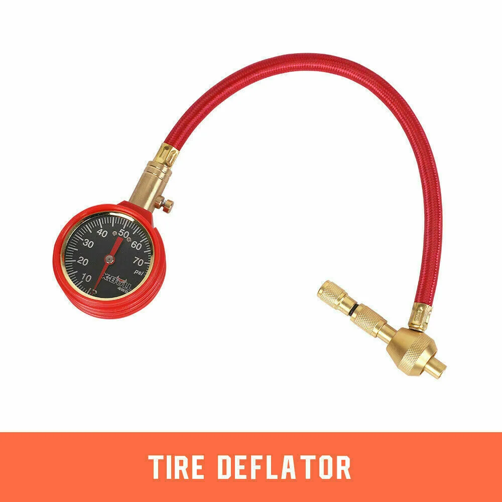 Tire Deflator gauge to help you maintain your tires at the right pressure depending on the trail demands.Corrosion resistant brass/stainless