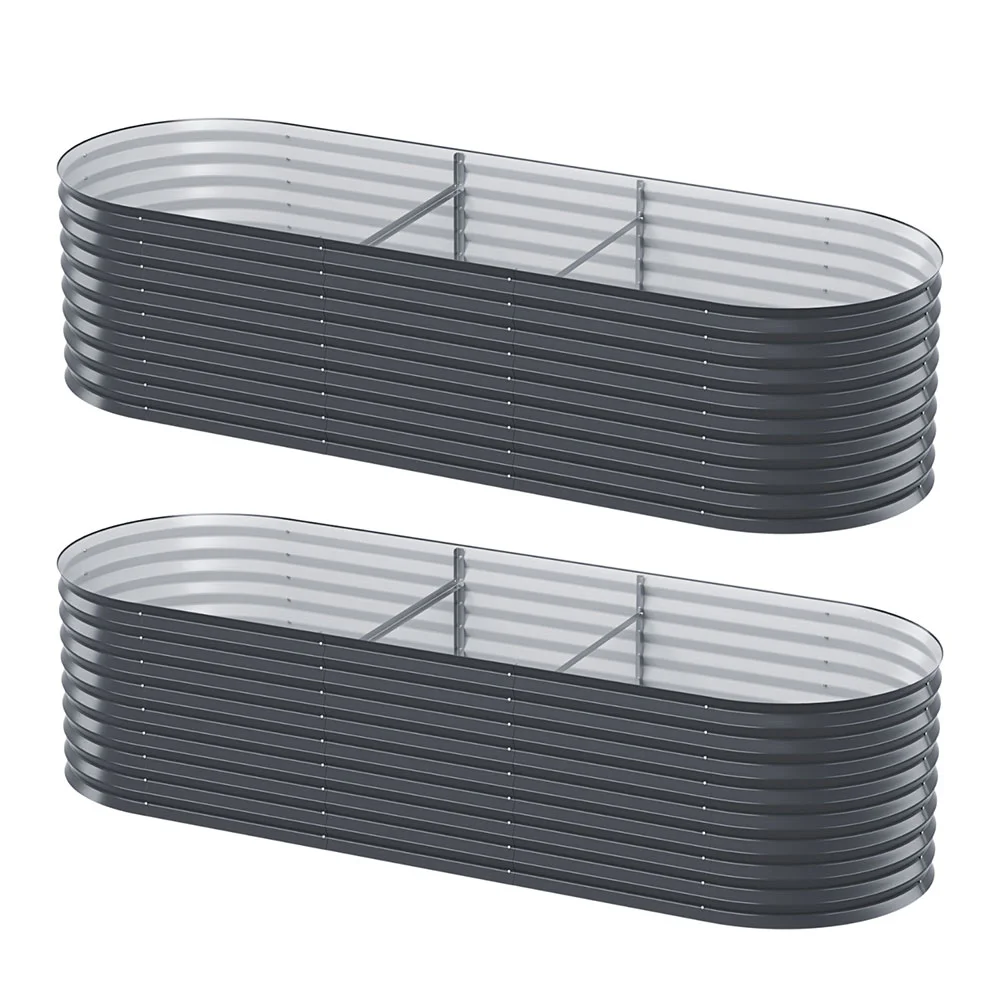 Green Fingers 3 Pcs Raised Garden Bed Kit Oval Galvanized Steel Planter Boxes 320x80x42cm, Heavy Duty Metal Elevated Garden Bed for Vegetables Flowers Herbs, with Safety Edging, Gloves & Pegs Included
