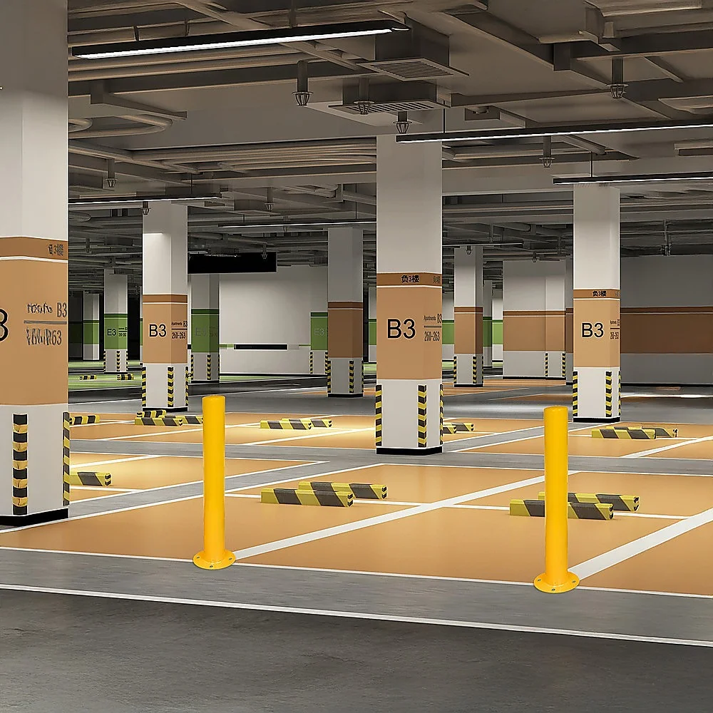 These Safety Bollards feature a heavy duty galvanised post and solid round mounting base plate.