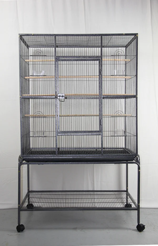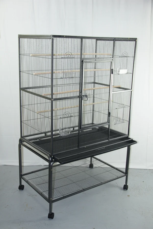 Our good quality wrought iron birdcage features perches, feeders and ample room for your bird to spread their wings.