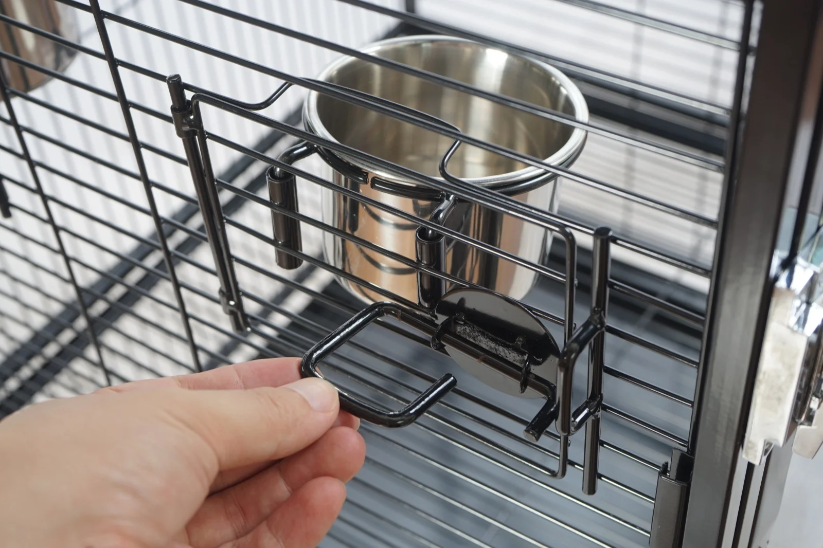Taking care of bird is made easy with one large access door and two side doors to reach inside the five food and water bowls and take them out for refilling or cleaning. Cleaning is hassle-free with the slide-out top and bottom tray that can also be removed.