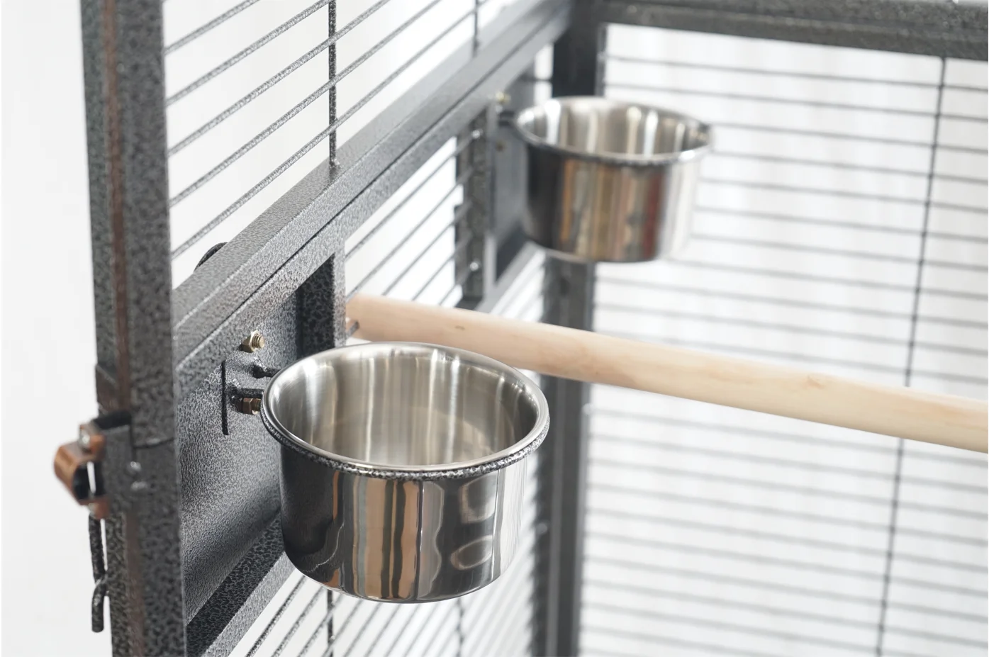 Taking care of them is made easy too with one large access door and four side doors to reach inside four food and water bowls and take them out for refills or cleaning. Cleaning is hassle-free with the slide-out top and bottom tray that can also be removed. And your feather friends will feel extremely safe too with a set of secured locks to keep prying predators away.