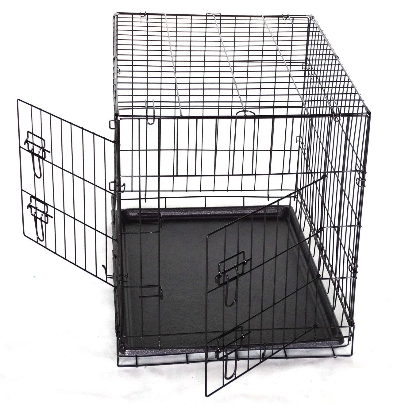 Featuring a foldable design with double access doors, this dog cage offers maximum convenience and is extremely safe for containing your pets. It's metal constructed with a powder-coated finish enhancing durability. Easy to set up, store, transport and clean, an absolute hassle-free purchase! Great for securely keeping your pets contained, a must-have for every pet owner.