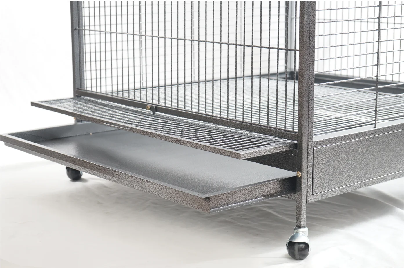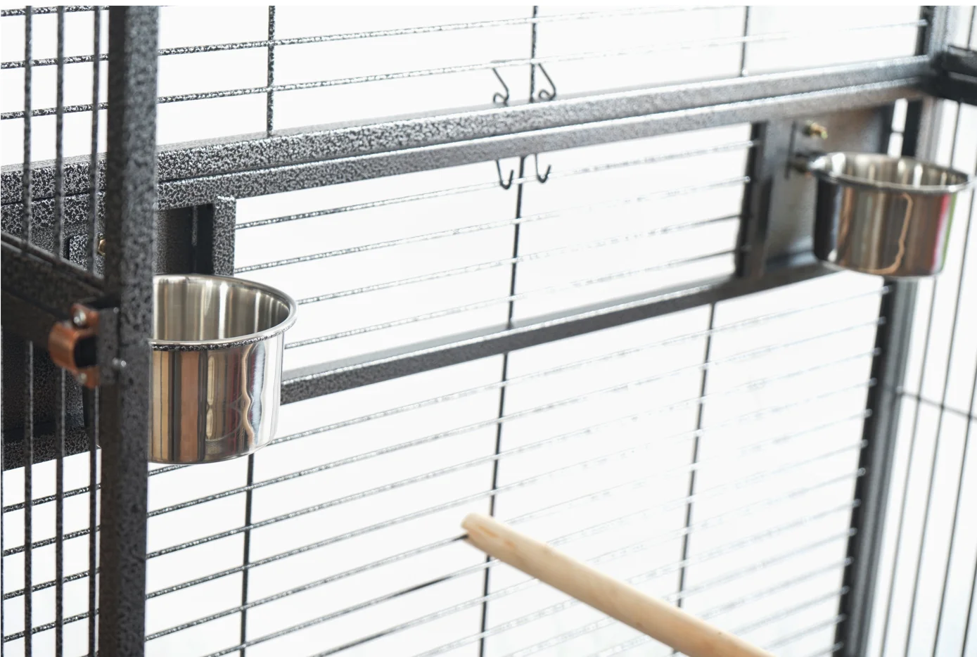 Taking care of them is made easy too with one large access door and four side doors to reach inside four food and water bowls and take them out for refills or cleaning. Cleaning is hassle-free with the slide-out top and bottom tray that can also be removed. And your feather friends will feel extremely safe too with a set of secured locks to keep prying predators away.