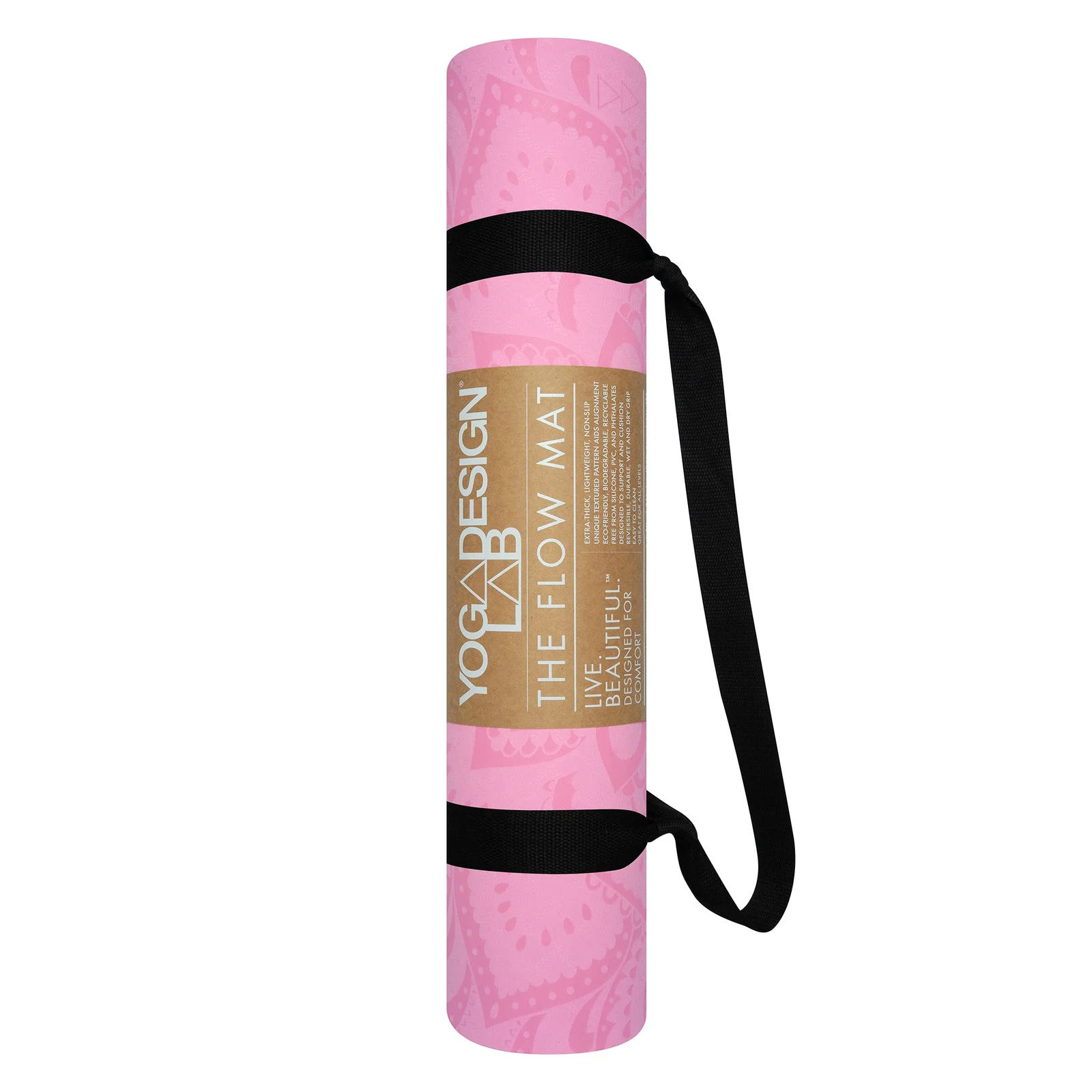 Yoga Design Lab Flow Yoga Mat 6mm Pure Mandala Rose.This lightweight, ultra-cushioned mat is ideal for beginners or those looking to add an occasional yoga practice to their fitness routine. A great all-around combination of cushion, durability, and performance.Plush TPE material is inviting and provides a soft ride, while the closed cell construction prevents moisture and bacteria from seeping into the mat. Approximately half the weight of other mats, The Flow Mat is incredibly light and easy to transport.The unique, textured pattern aids in alignment learning correct form.