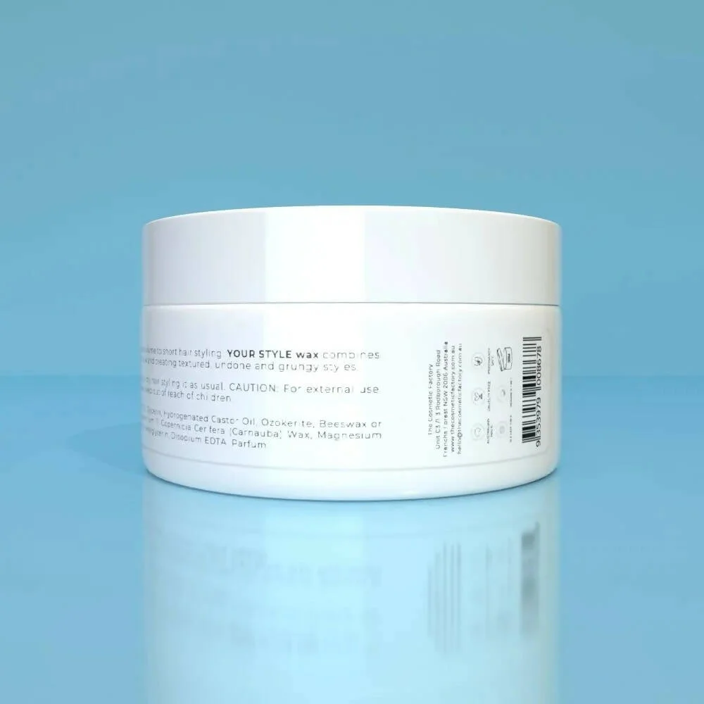 This ultra light water based pomade is designed to give intense, long lasting hold and sculpting power for short hair styling. YOUR STYLE wax is easy to apply and gives a shiny wet-look finish without that sticky feel.