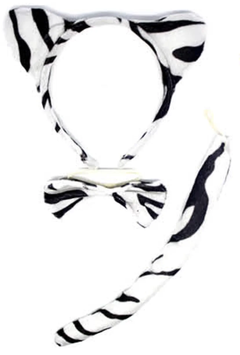ZEBRA EARS HEADBAND w Bow Tail Animal Costume Halloween Party Hair Accessory